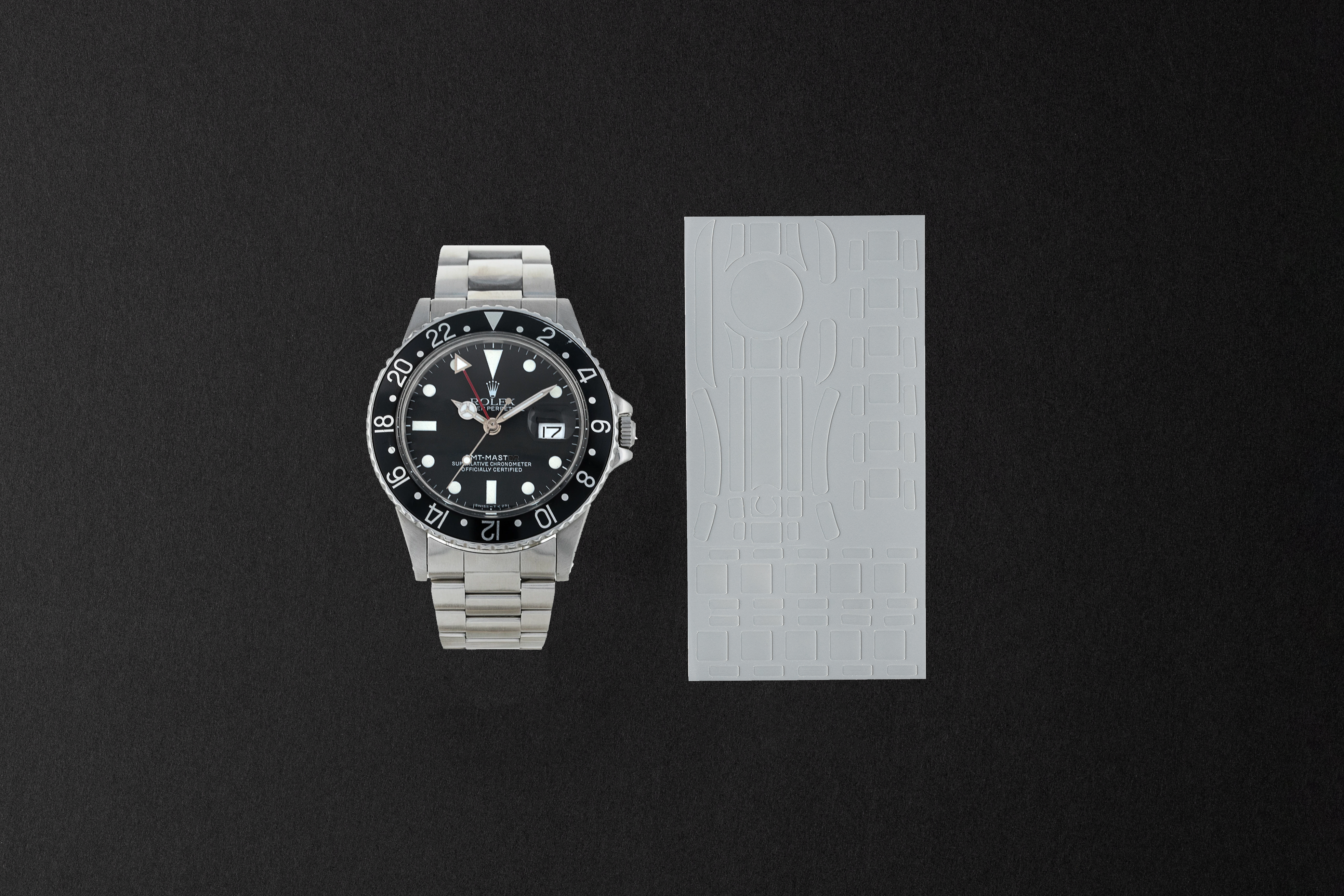 Graphene offers customized laser cut protection film for luxury timepieces in order to maintain your timepieces’ value and condition at all times for Rolex GMT Master I Protection Kit (Oyster)