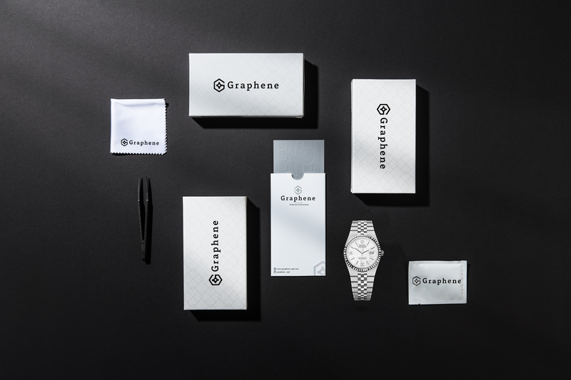 • A full Graphene watch protection film covering the bracelet, case, and clasp of the watch.